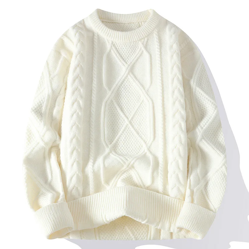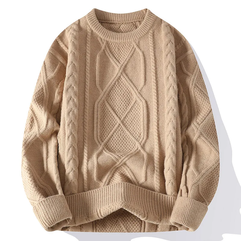 Custom Plus Size Vintage Twist Cable Design Knitwear Men's Crew Neck Long Sleeve Sweater for Autumn Breathable Knitted